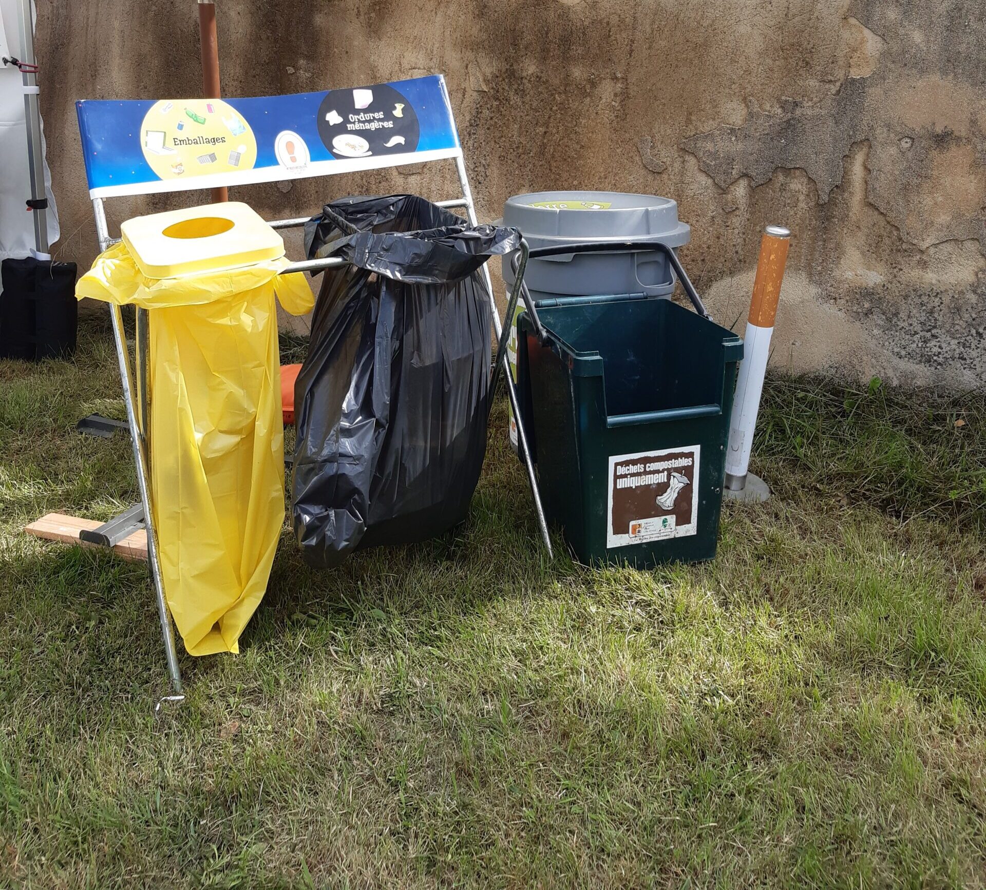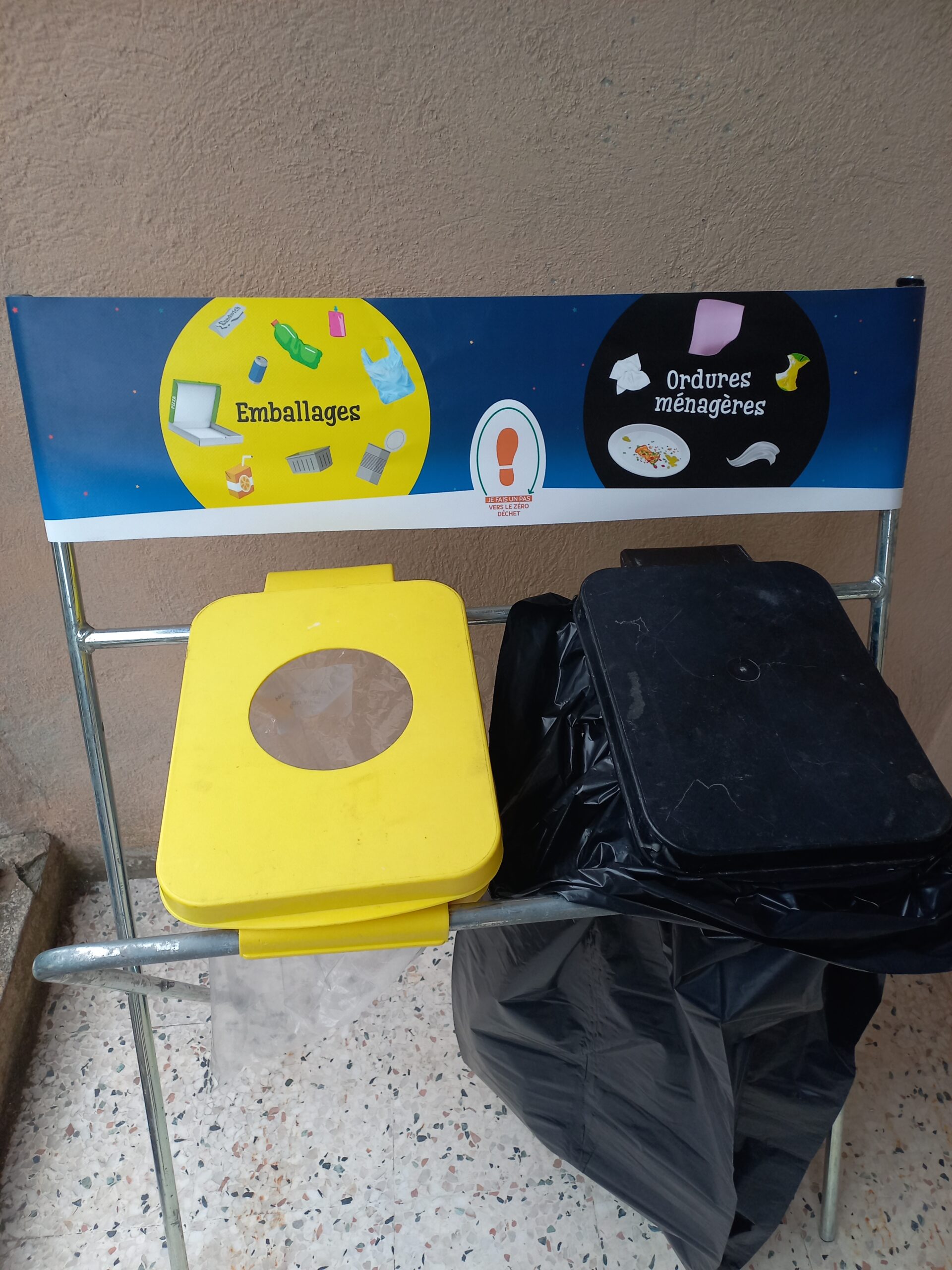 - Poubelle bi-flux (un sac ordure ménagère, un sac emballage)